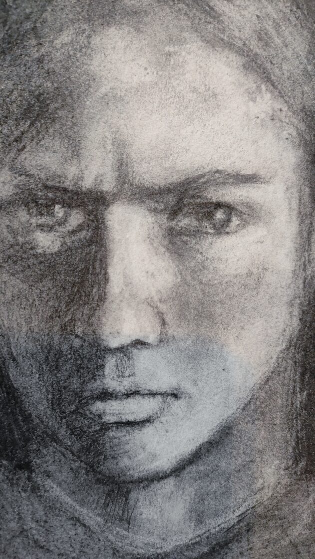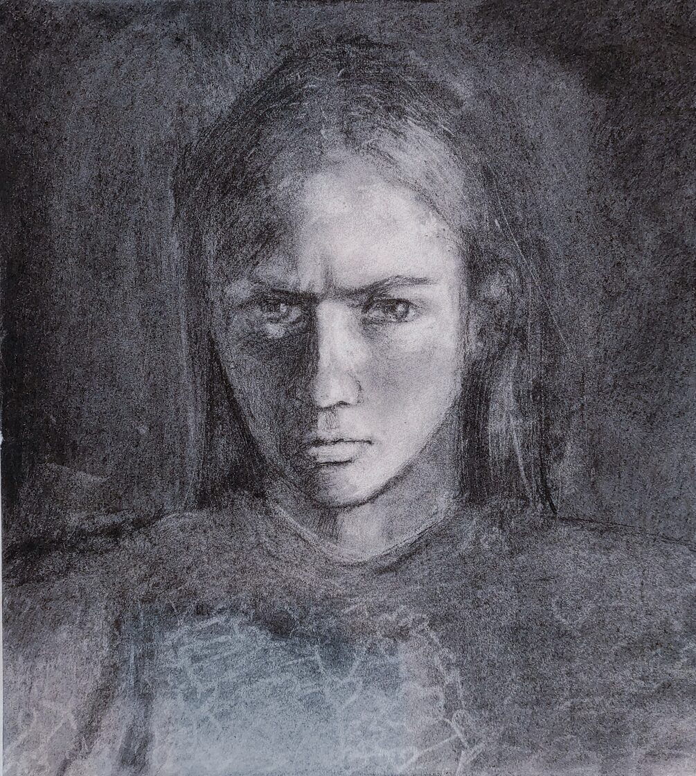Ukázka z portfolia na SŠ, kresba uhlem -